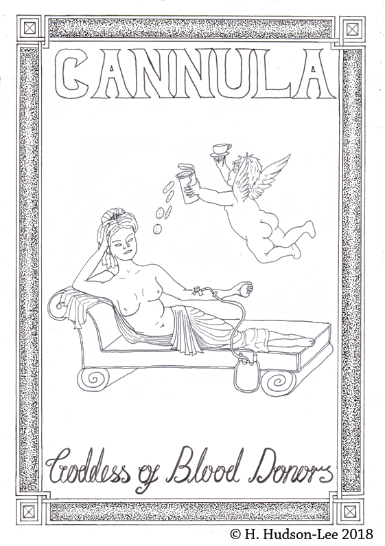 Cannula is the goddess of blood donors, anaesthetists and re-hydration therapy. In mythology she was the consort of the God Apheresis until they were separated. Sadly, their love was in vein.