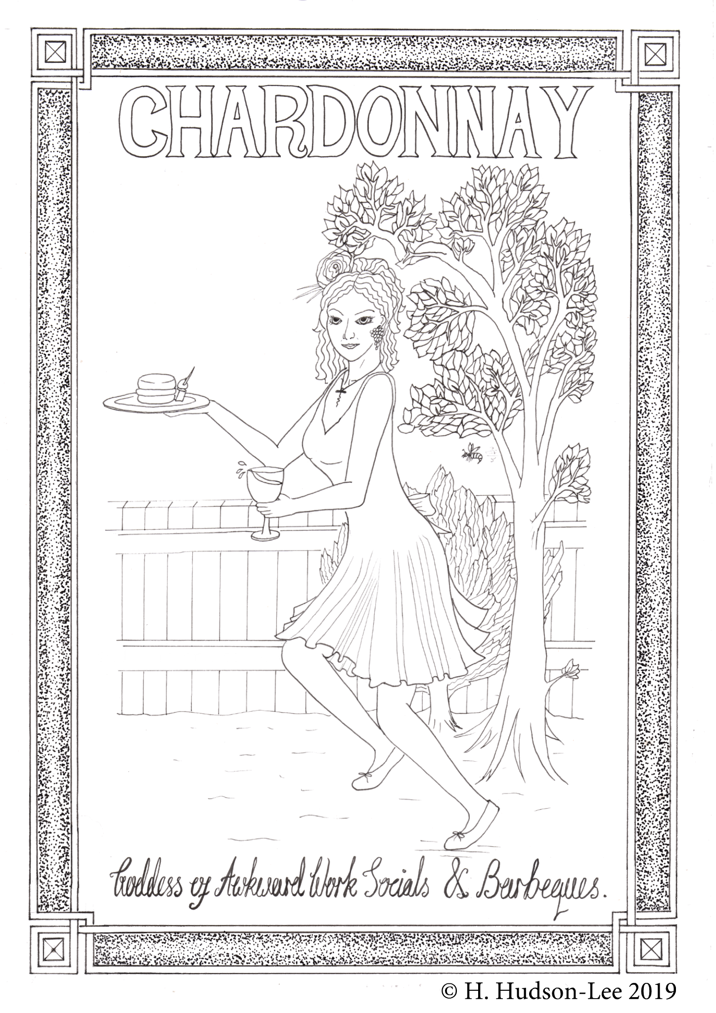 Shortly after the concept of employment began, way back in human prehistory, the excruciating torture of the work social began. In answer to a million desperate glances at watches, Chardonnay rose fully formed from the ashes of a barbecue to watch over all those hiding in the shrubbery and sobbing into their fourth cocktail. Chardonnay is always dressed smart-casual but is constantly desperate to take off her bra and slip into her pyjamas.