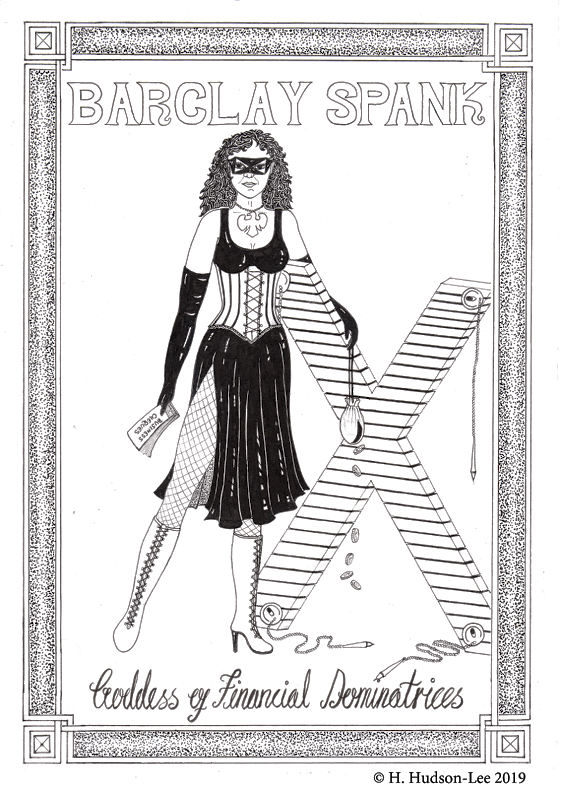 Barclay Spank came about when we realised how many terms banking and kink shared. The puntential was too much to resist. Thanks to Pascal Harper for his excellent bankink pun suggestions.
