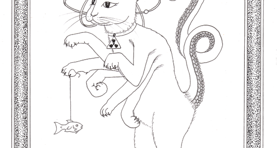 The original atomic kitten, Octopussy was created when Schroedinger and Einstein were watching their figures, declared that they couldn’t possibly eat a whole atom each, and decided to split one. Using the get-out claws on the ends of each of its eight limbs, Octopussy fought its way painfully out of Schroedinger’s box (settling that thought experiment once and for all). The tentacle tailed feline of nightmares set forth to shower it’s radiance upon the world. A relatively modern god, dating only from the last century, the genesis of Octopussy is already used to mark the start of a new age. Members of the faith will refer to the time before as “Before Octopussy” or “B.O.” as it was also before the invention of Right Guard.