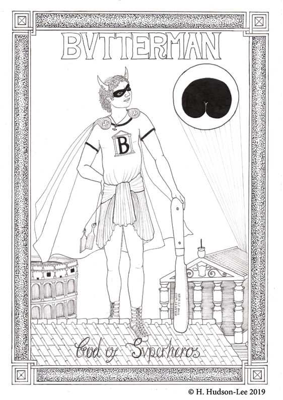 Butterman is not the first hero, but he does have a strong claim to be the first superhero. We know of his exploits from original Roman frescoes, mosaics and murals. Unusually for the period, the stories are told over several sequential pictures and are captioned with little Latin inscriptions in speech bubbles.