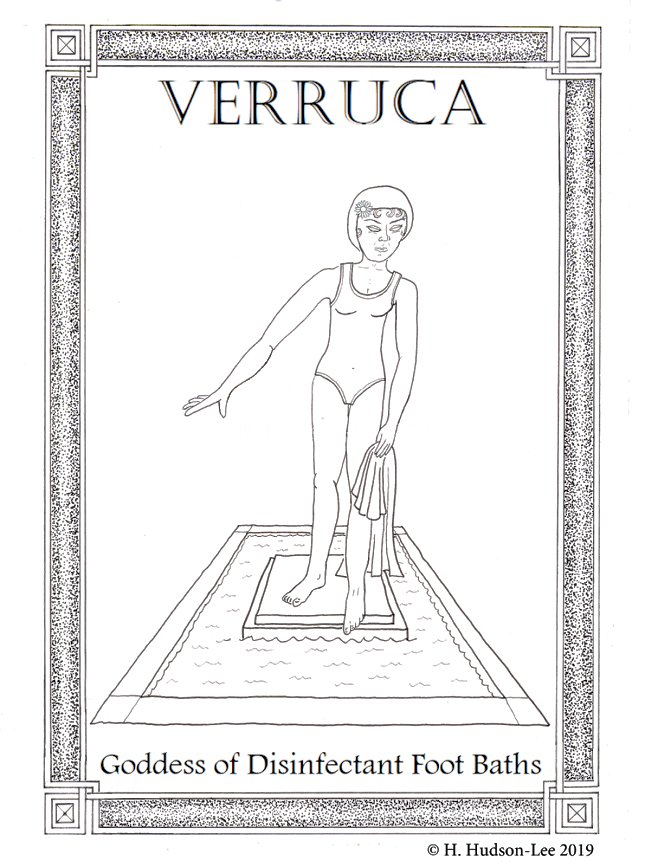 Verruca has a dark and strange mythology. Ancient historians recorded grizzly rites where human body parts were sacrificed to her. She was said to particularly favour offerings of athlete’s feet. Verrucan parents used to frighten their children into obedience with tales of a tribe of uncivilised and unhygienic barbarians known as “The Wild Swimmers”, who eschewed Verruca’s sacred pools and leaped fearlessly into any stretch of open water.