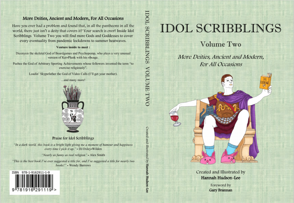 Idol Scribblings Volume Two is a collection of Idol Scribblings Cartoons taken from 2019-2020. 55 illustrated fictional deities for modern problems. Packed with humorous slants, satirical twists and terrible puns. Meet new Gods that you need in your life right now, such as Quarantina the Goddess of Lockdowns and Beelzebuble the God of Commecial Christmas Music.