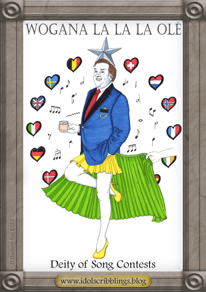 Following the opening prayers, a representative from each Wogananian country will take turns to make an offering of a song to Wogana. An uninitiated person watching the proceedings might conclude that there is considerable confusion over what will please this deity. Some offer catchy hooks and pyrotechnics, some bring hoards of metal shredding Vikings or teams of moshing babushkas, whilst others present a wailing lady with a man wearing a horse’s head, sat on a stepladder. The correct answer, of course, is that what pleases Wogana above all things is diversity, spectacle and a lot of glitter. The more utterly bonkers the better. These representatives give their all performing to please Wogana and their followers (or at the very least elicit a sardonic witticism from the High Priest). They also compete for the honour of hosting the following year’s festival. Whilst winning isn’t everything, and it truly is the taking part that counts, every performer at the rite lives in dread of displeasing Wogana and having their souls fed to the demon “Nulpoints”. Singers who suspect this fate may be in store for them often turn Blue and quickly Scooch out of there. Wogana being counted amongst the gods of Eire may be the reason why Ireland has seen such success in the contest over the years. They have hosted the great festival so many times that they Michael Flatley refuse to host it again any time soon.